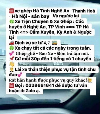 👉Bao xe -Tiện Chuyến – Ghép. Vinh – Hà Tĩnh – Kỳ Anh – Sân Bay Đồng Hới và Ngược lại . Sb Thọ Xuân – Nghệ An -Vinh- Hà Tĩnh và Ngược lại